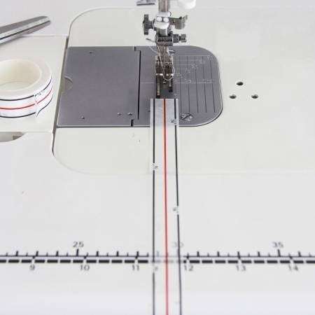 Cluck cluck Sew, 1/4" Diagonal Seam Tape- a perfect solution for sewing straight diagonal seams without having to mark any lines! The special washi tape is strong, thin, and removes cleanly after sewing projects. Simply place the tape in front of the feed dogs with the red line in front of the needle as the stitch line. The black lines on either side of the center line represent a perfect 1/4" seam allowance and are a great resource to use when making half square triangles, or learning to keep a perfect 1/4". Each roll is 10 yards.