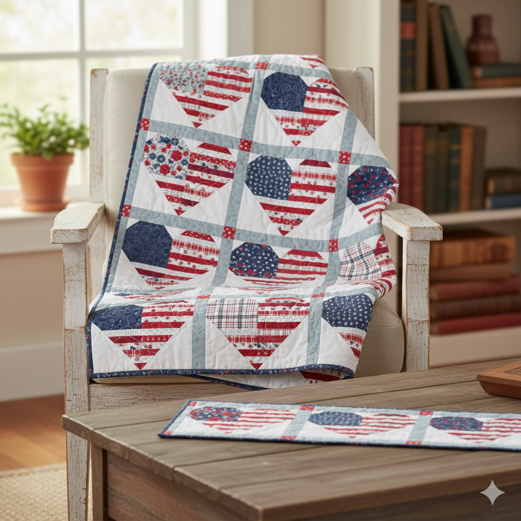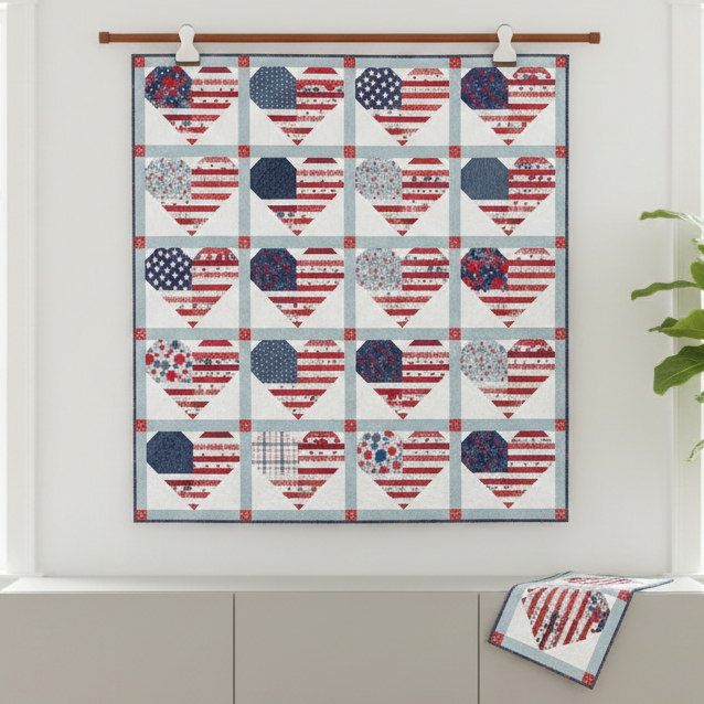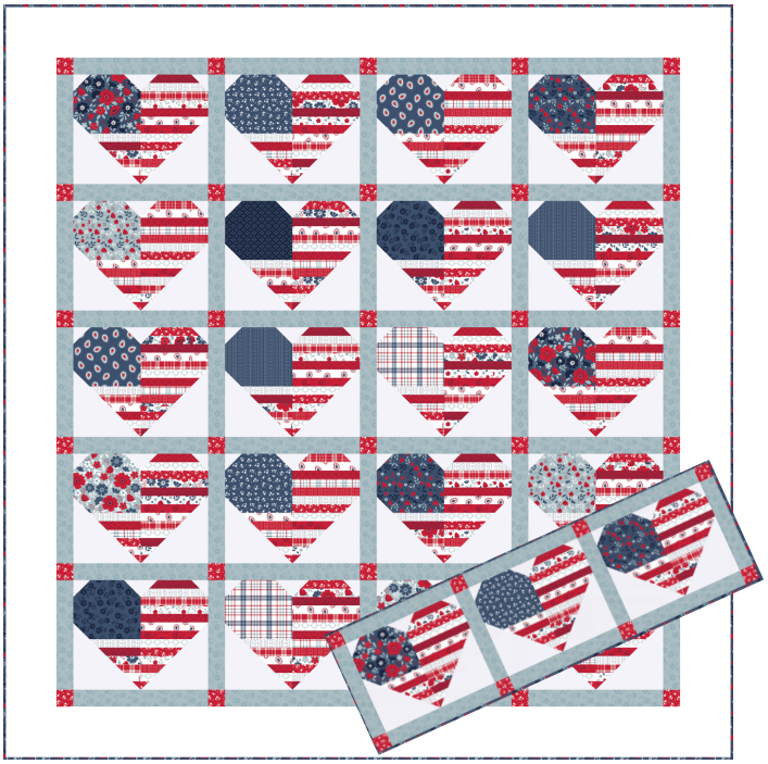 American Heart Quilt Kit featuring American Beauty by Dani Mogstad for Riley Blake Designs - Kit includes the "American Heart" pattern by Aria & Ava Quilts and fabrics to complete the 66" x72" throw size quilt top and binding.