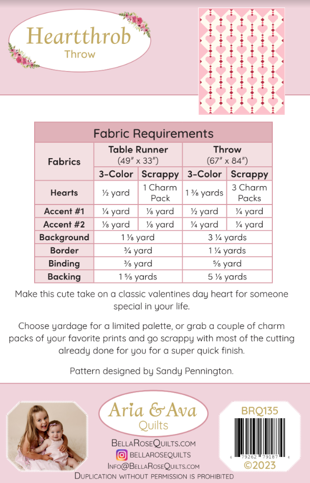 Heartthrob Quilt Pattern by Aria & Ava Quilts (Printed Pattern)- pattern includes instructions for 67x84" quilt and bonus table runner!