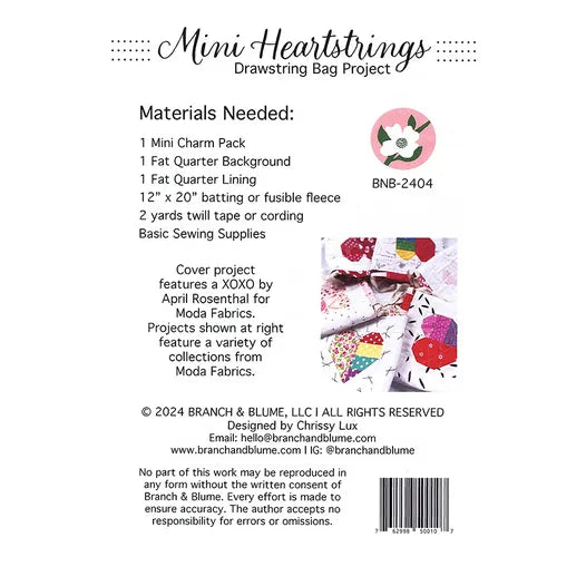 Mini Heartstrings Bag Pattern by Branch & Bloom (Printed Pattern)