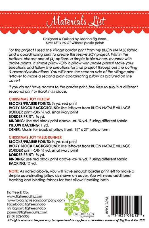 PATTERN Christmas Joy Pillows FT3075 from Fig Tree & Co.