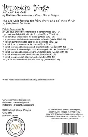 PATTERN Pumpkin Yoga CHD-2449 by Barb Cherniwchan for Coach House Designs