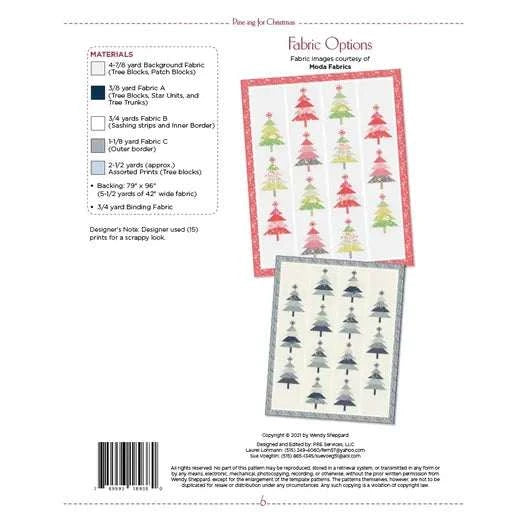 This is a printed pattern called Pine-ing for Christmas designed by Wendy Sheppard. This quilt finishes at 71" x 88" and features stunning traditionally pieced pine trees.