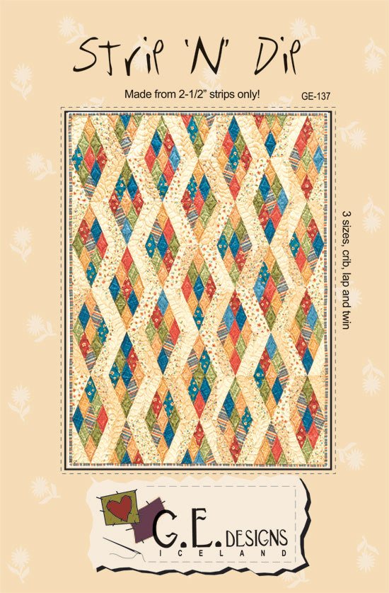 Strip N' Dip is back by popular demand! This playful, ultra-versatile pattern is packed with endless possibilities for coloring and layout options. If you love the charm of a scrappy look or prefer a more coordinated style, Strip N' Dip shines either way! Use your favorite assortment of 2.5" strips and make cutting a breeze with the Stripology Squared or Stripology XL rulers by GE Designs. (Don't worry, instructions for traditional rulers are included too!) The pattern includes three size options: crib, lap, and twin.